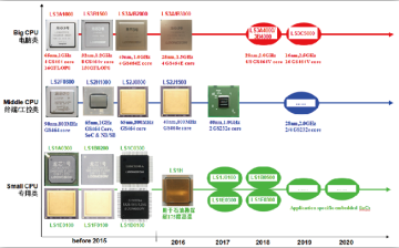 機等應用。產(chǎn)品線包括龍芯1號小CPU、龍芯2號中CPU和龍芯3號大CPU三個系列。