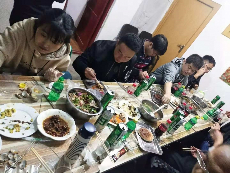 伴隨著夕陽落山,山里的氣溫逐漸寒冷,這時(shí)饑餓寒冷的我們,真想吃一只烤全羊,這不,說什么來什么,烤肉爐子支起來,烤肉派對(duì)就這么愉快的開始了!大家紛紛發(fā)揮自己的生活能力,吃著香噴噴的烤肉,喝著冰爽的啤酒,總結(jié)著拓展訓(xùn)練中的成功與失敗,只覺得很充實(shí),突然感覺到,大家在一起真好,也意識(shí)到原來這就是團(tuán)隊(duì)!